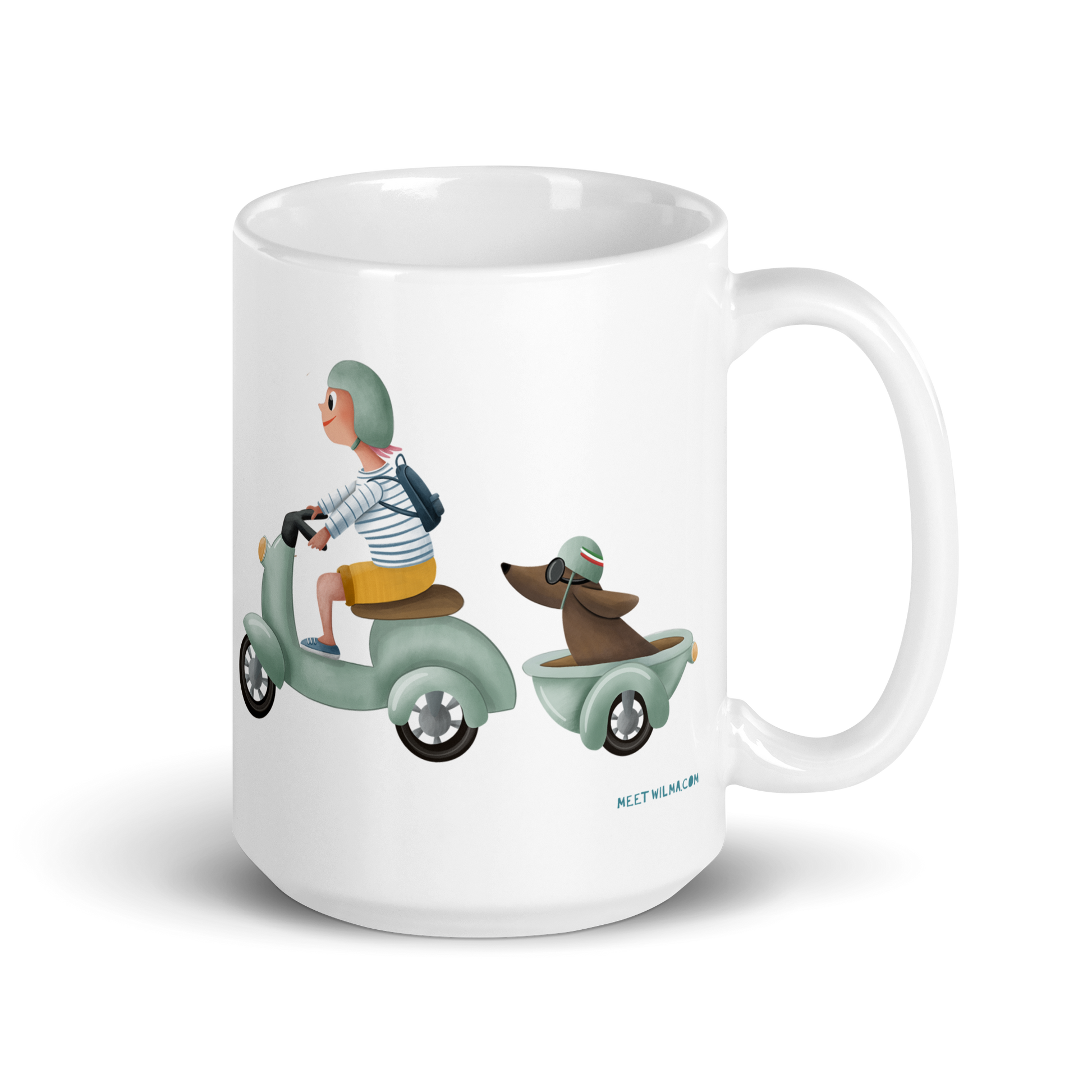 This cute Dachshund Mug "Toscana Ride" is spreading spring vibes. Hop on and follow us on our trip through sunny landscapes.