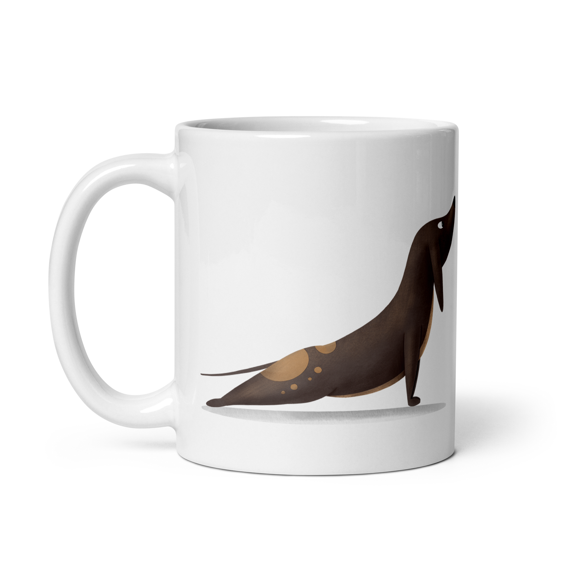 Perfect for your Yoga break: the Dachshund “Stretching Sausage” mug. Also a perfect gift for a Yoga fan. Keep the tension folks!