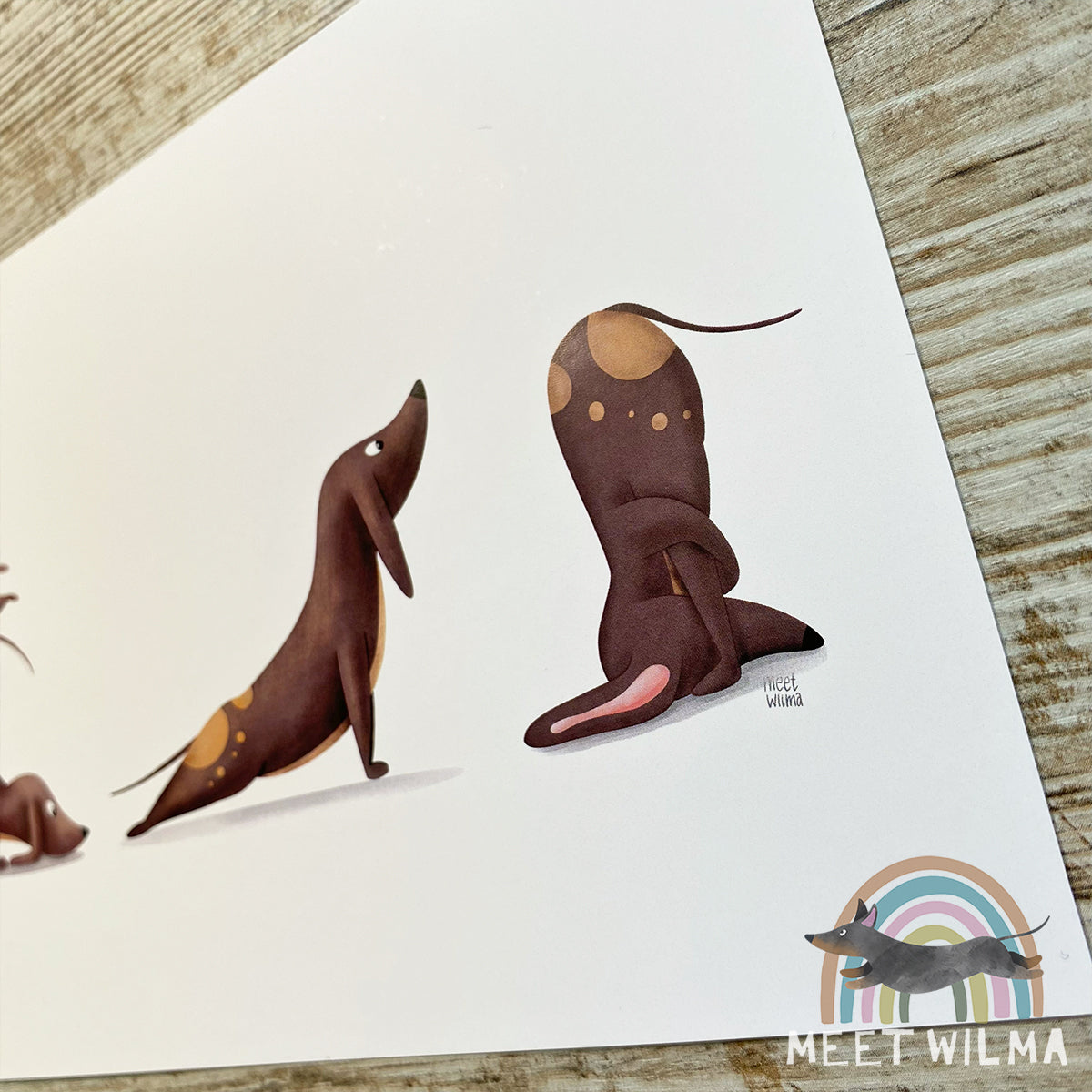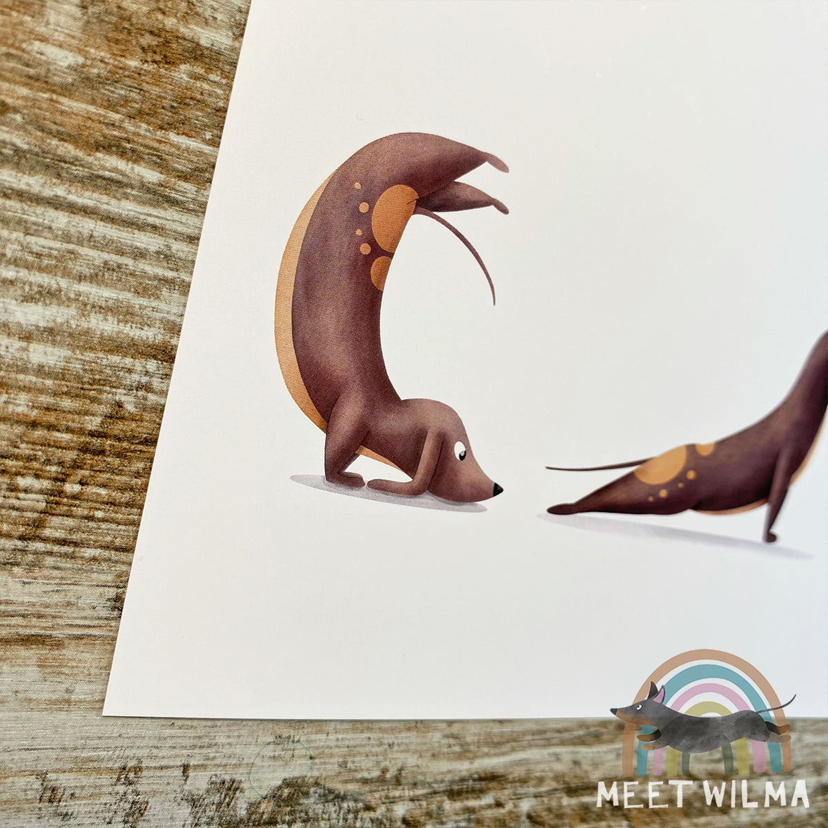 Time to stretch and relax, so get your yoga mat out and start stretching! This cute Dachshund Art Print "Sausage Yoga” is a perfect gift for yourself or Doxie lovers for any occasion, no matter if you are a sporty sausage or not.