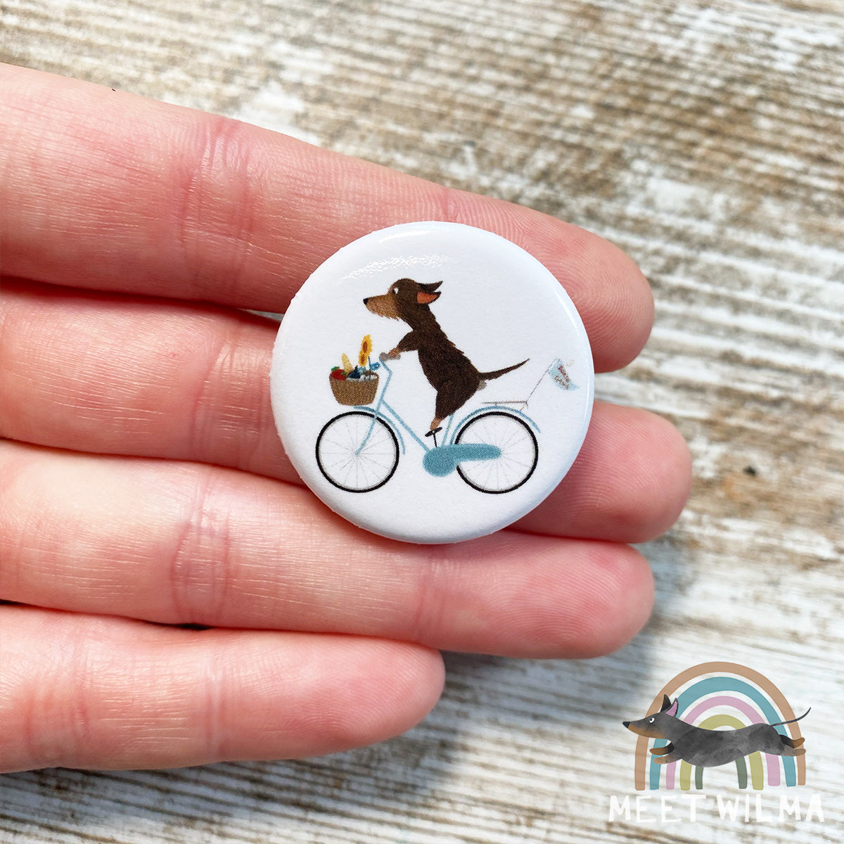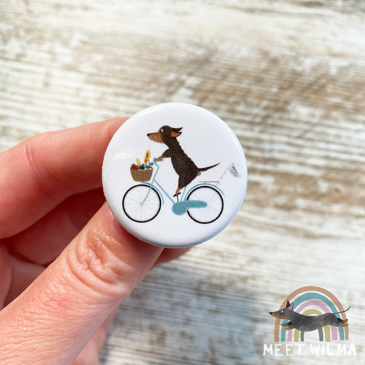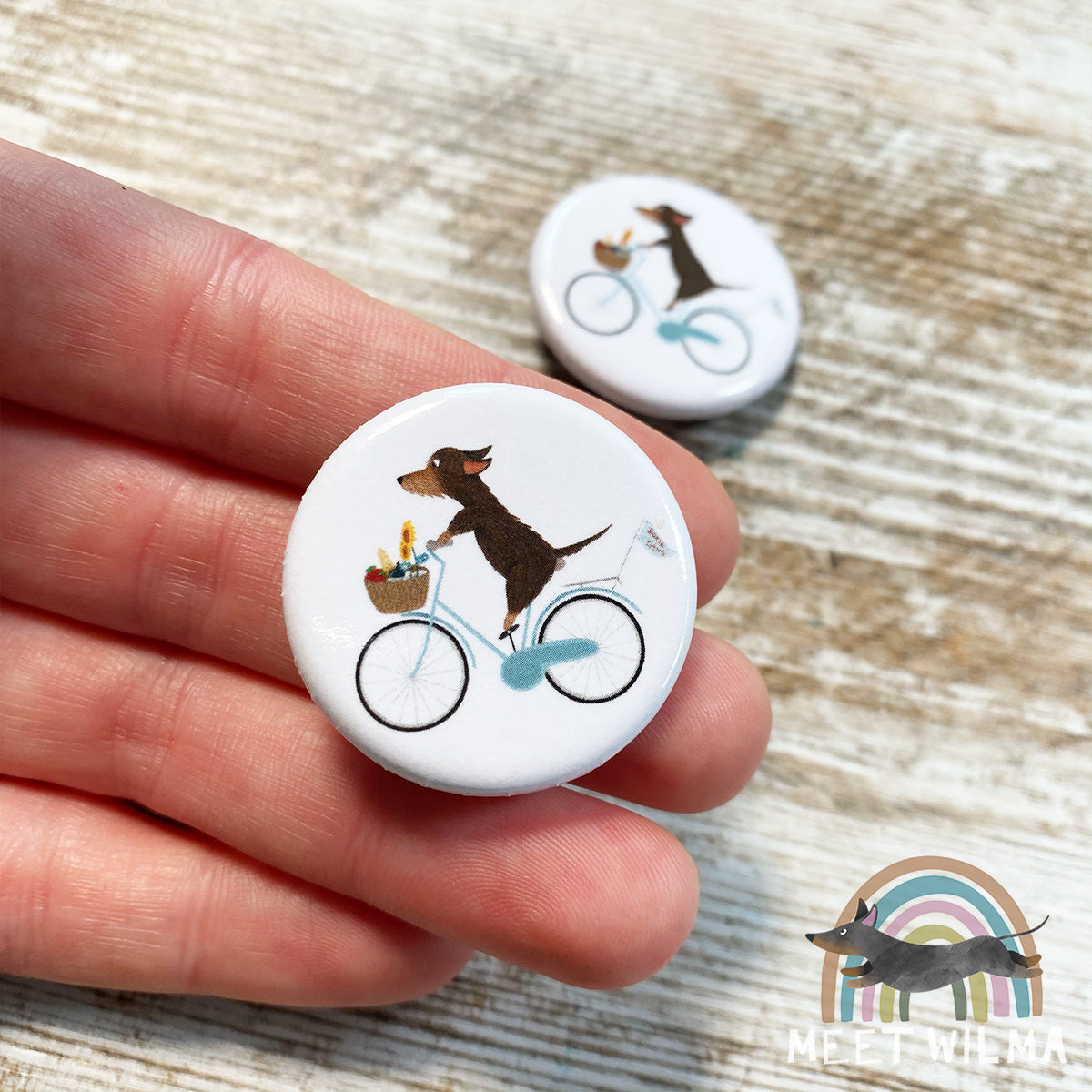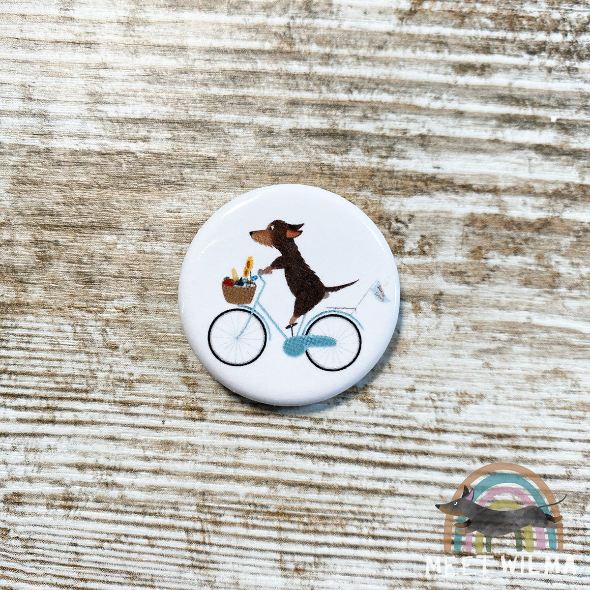Cute wire-haired Dachshund button "Doxie Gang".