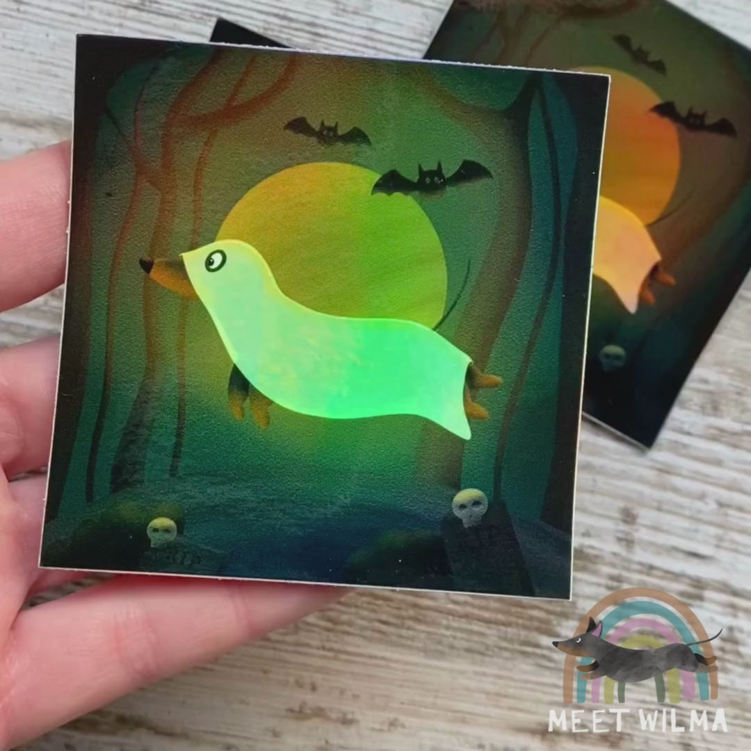 This durable holographic sticker "Pawstronaut" is a perfect decoration for your laptop, your notebook, or your phone case.