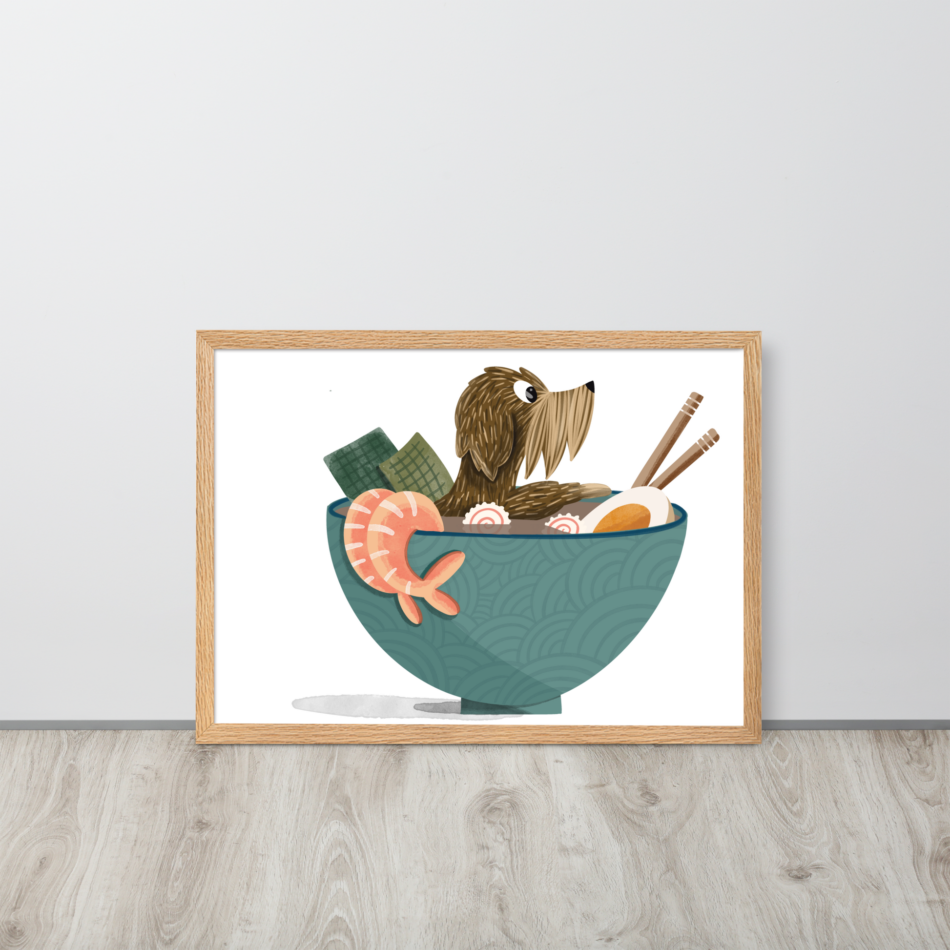 This cute Dachshund illustration "Sausage Ramen" is a perfect addition to your kitchen.