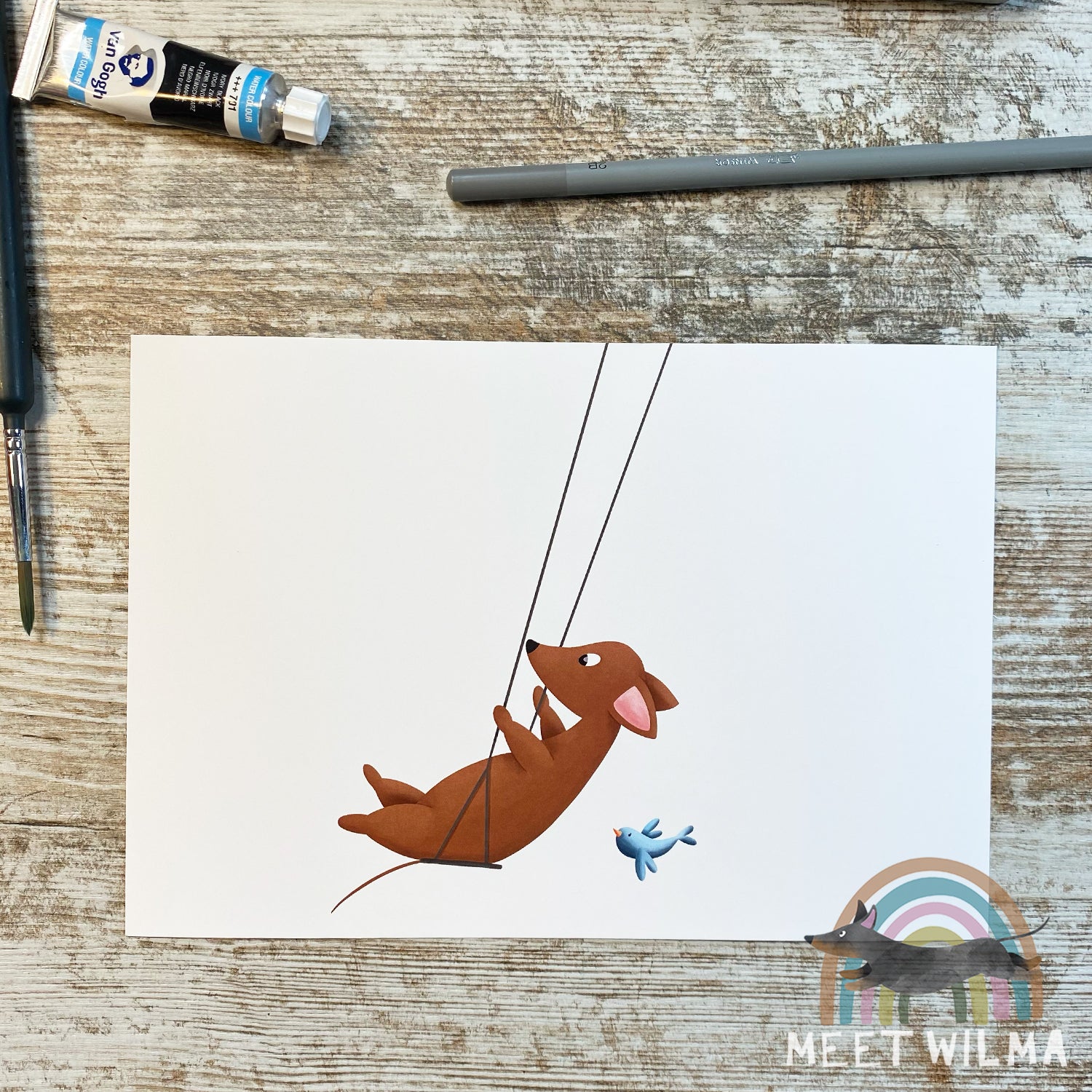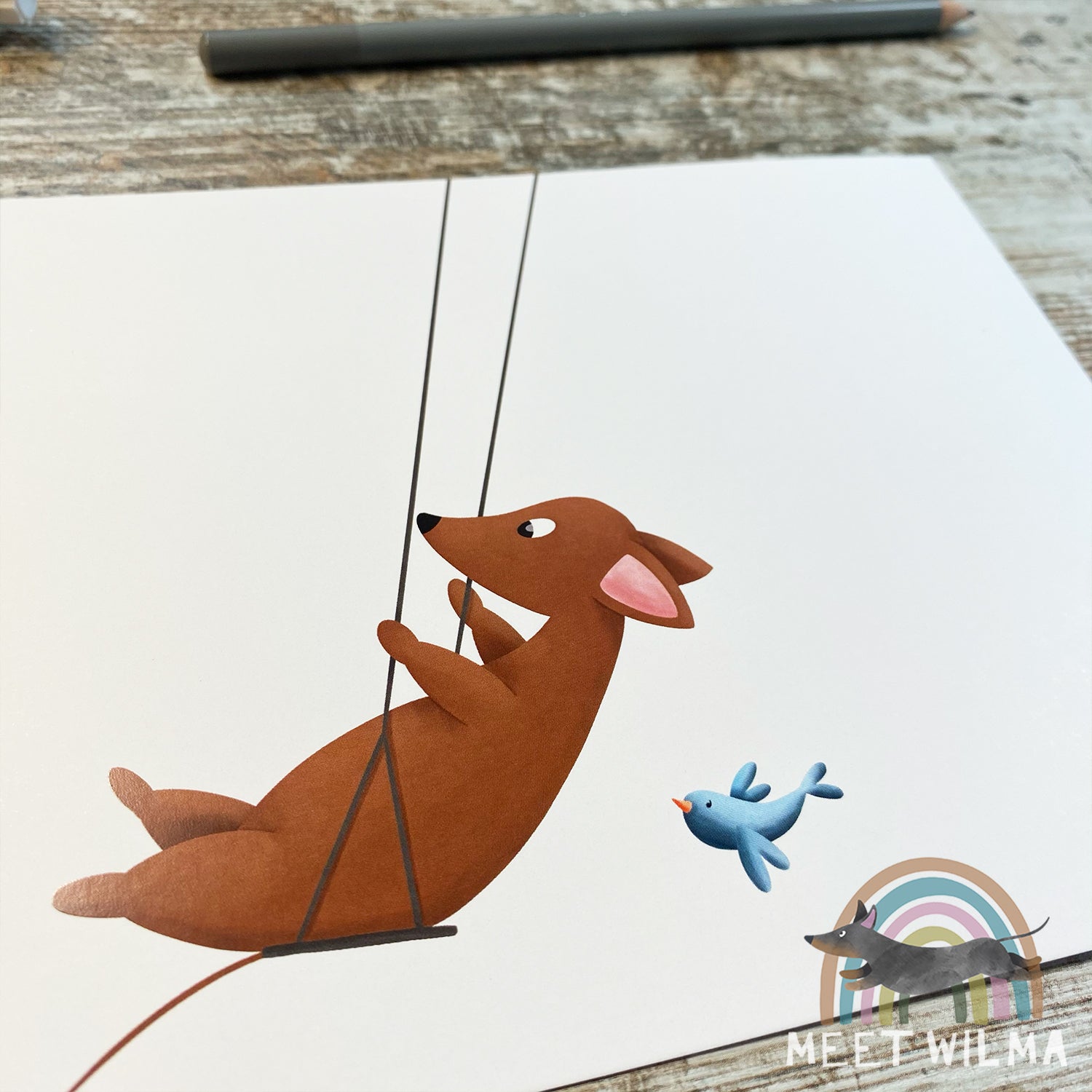 This cute Dachshund Art Print "Swing” is a perfect gift for yourself or Doxie lovers for any occasion!