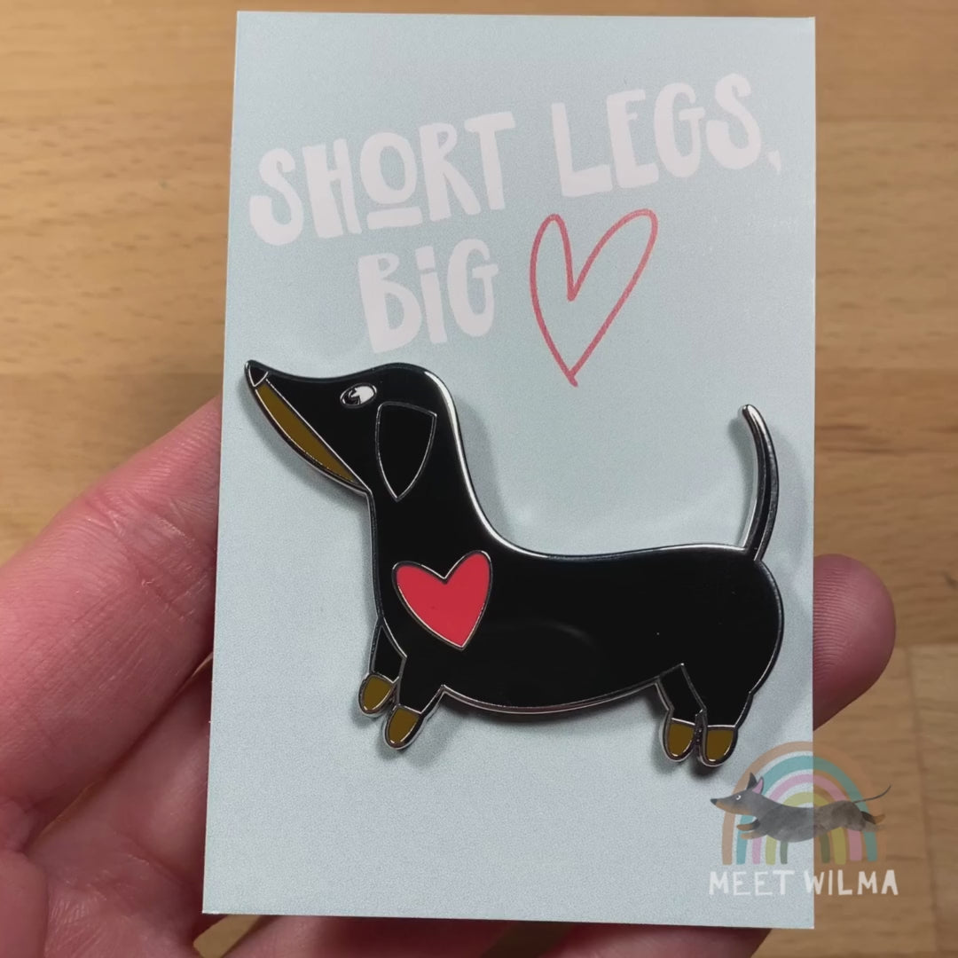 This pin is a relaunch of our "Heart" bestseller soft enamel pin. This Dachshund pin makes an extraordinary gift for beloved people.