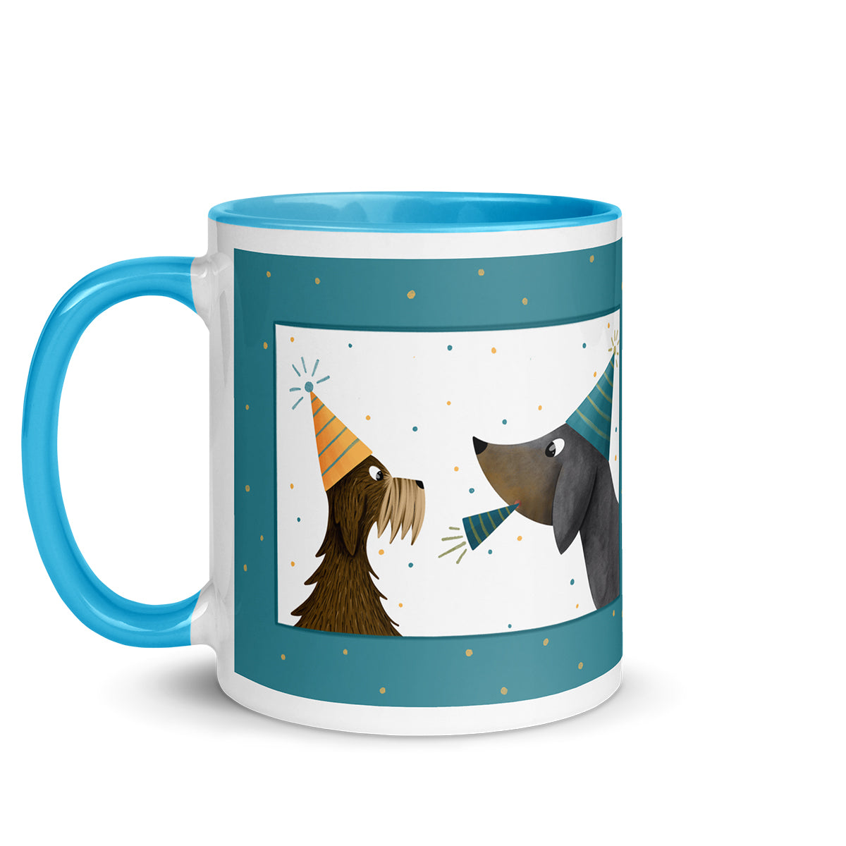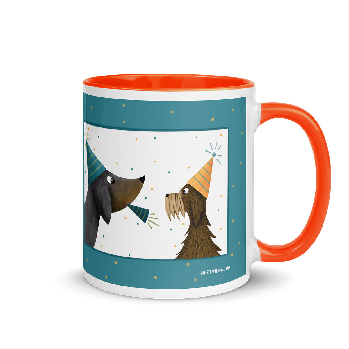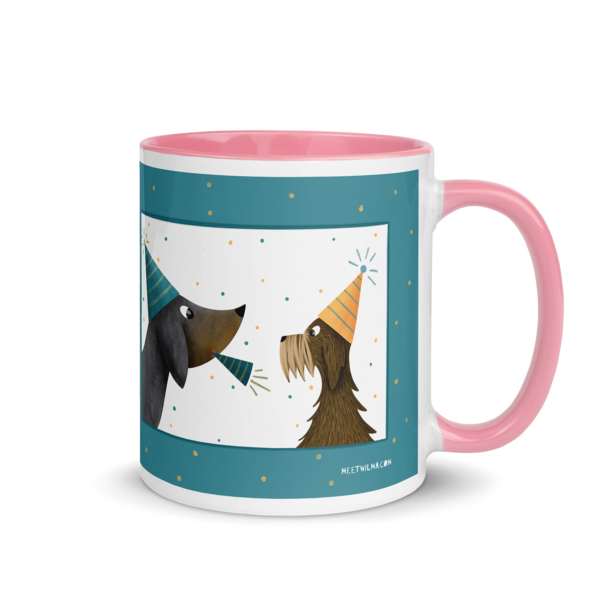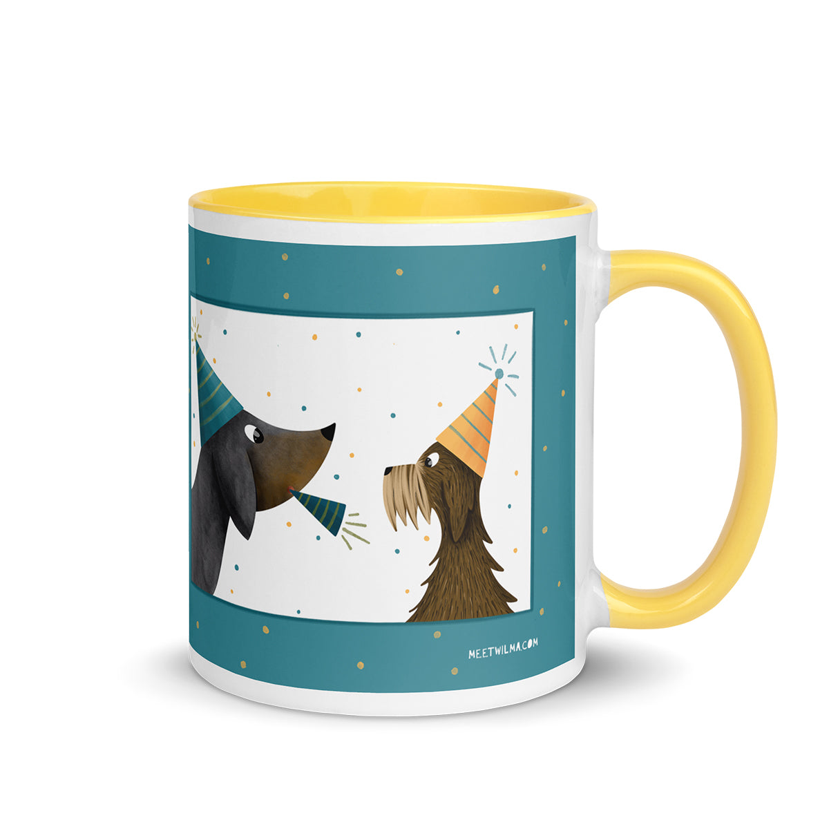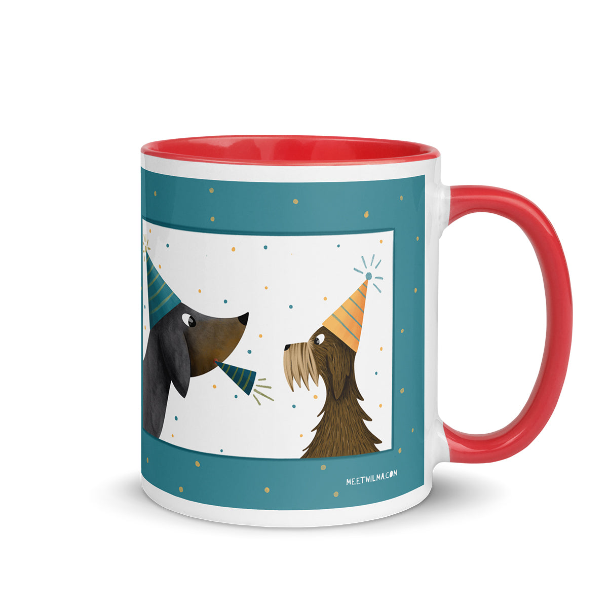 These ceramic mugs come with our Dachshund "Party Animals" illustration and also a colorful rim, handle, and inside. This mug makes a color splash to your mornings.