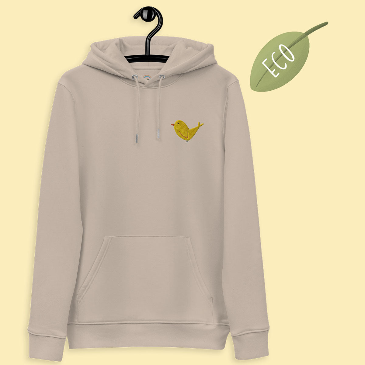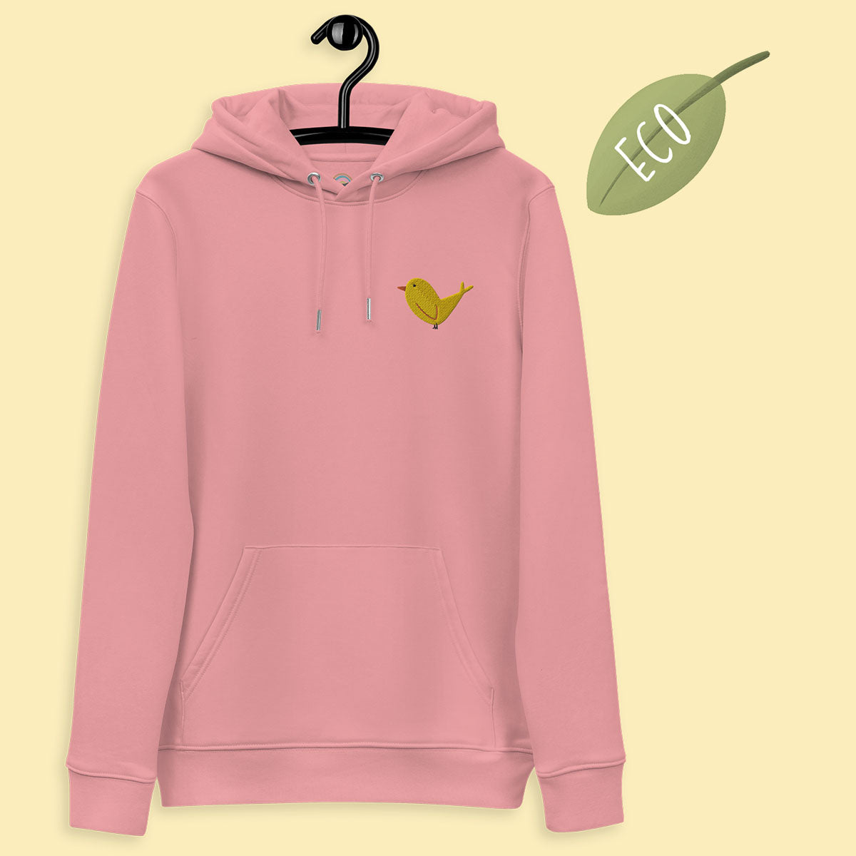 This eco hoodie is perfect for everyday wear. It's comfy, sustainable and comes with a super cute chicken embroidery. Join the Chick Club today 🐤